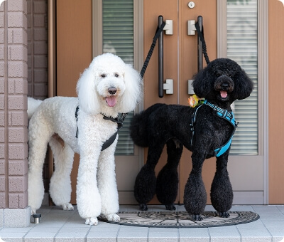 現在は2匹のスタンダードプードルを溺愛中(看板犬にするはずが、元気すぎてお客様の前に出すと大騒ぎで看板犬業務はあえなく挫折)。